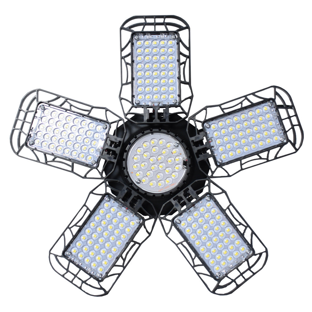Design réglable : les lames de cette lampe solaire de garage adoptent un design réglable, équipées de 5 panneaux réglables, chaque lame peut être ajustée à un angle de 120°, permettant à la lumière de pointer exactement là où elle est nécessaire, éclairant chaque coin