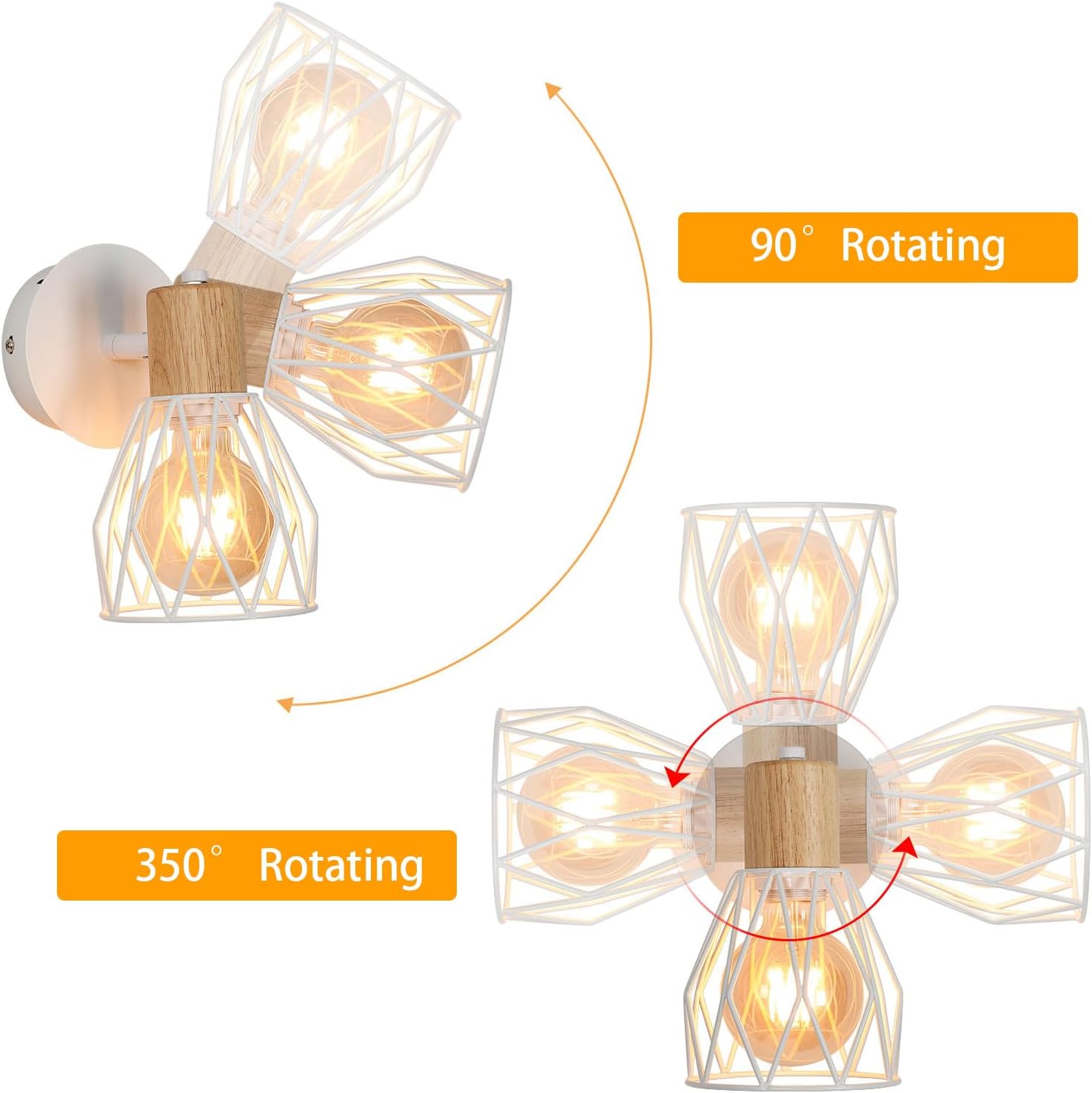 Angle réglable. L'applique murale en cage de fer peut être ajustée de haut en bas à 90 degrés et de gauche à droite à 350 degrés pour un réglage facile de la direction de la lumière.