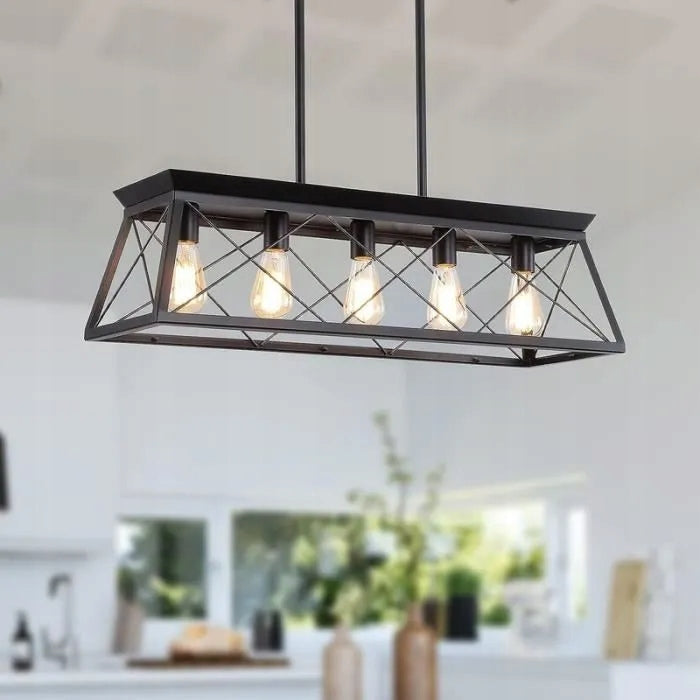 Ce pendentif est conçu avec un design industriel rétro. Les métaux noirs forment un cadre linéaire. La structure simple et la forme de la mode sont conçues pour éclairer le centre de la cuisine, du restaurant ou de la ferme.