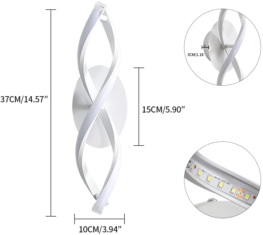 [Spécification] : Applique murale interieur LED 16W 1800 lm (la source lumineuse LED n'est pas remplacée), blanc froid 6500 K ; Taille : L10 mm x H37 mm (3,94 x 14,56 pouces), base de la lampe murale : 15 cm (5,91 pouces)