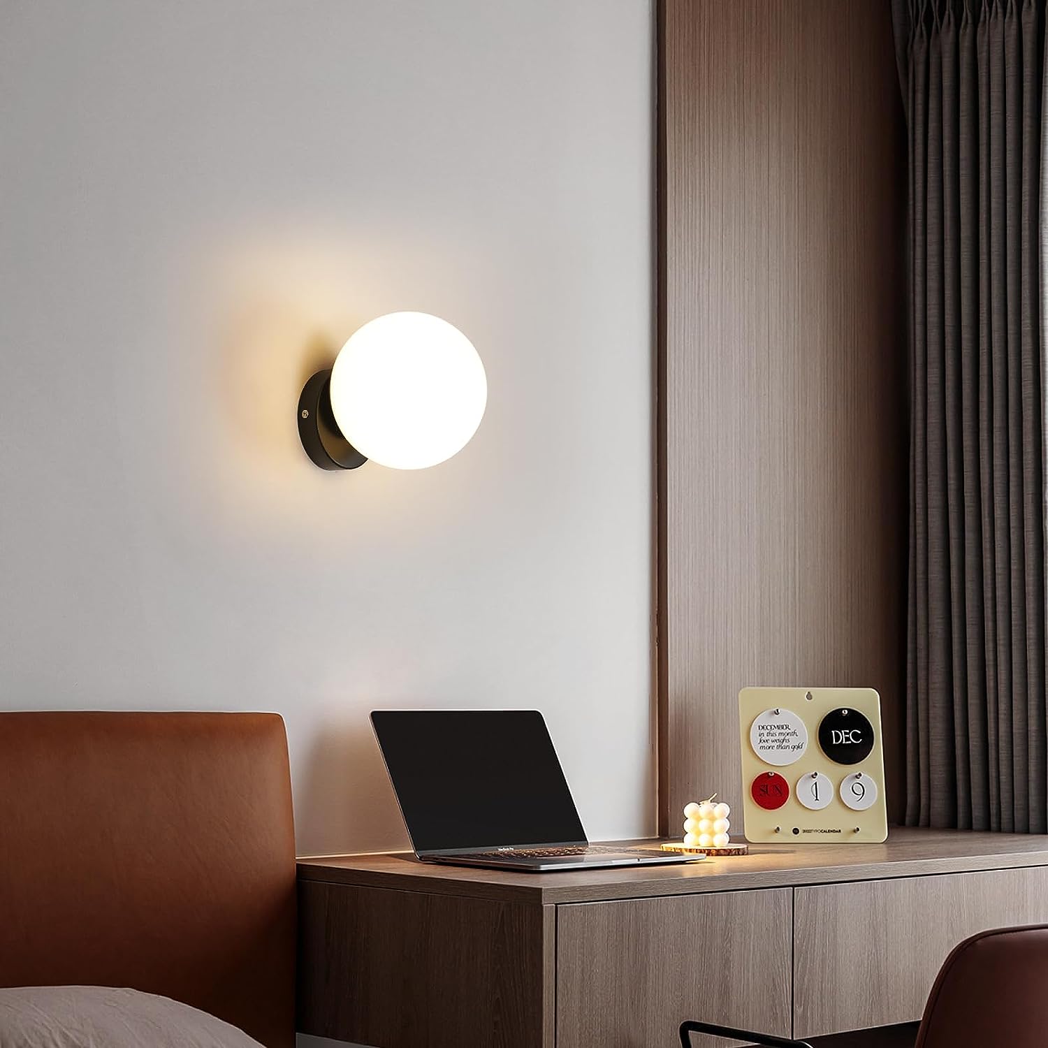 Design exquis et élégant : L'applique murale intérieure a une apparence simple et belle. La combinaison parfaite du châssis noir et de la boule de verre de 15 cm ajoute une atmosphère unique, moderne et à la mode à votre espace.