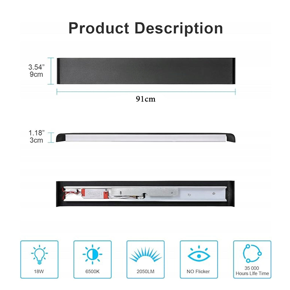 Caractéristiques Techniques: L'applique murale LED est dotée d'une puissance de 18W et produit une lumière blanche froide (6500K), idéale pour créer une ambiance lumineuse dynamique. Avec une taille de 61cm, elle offre un éclairage efficace pour différents espaces.
