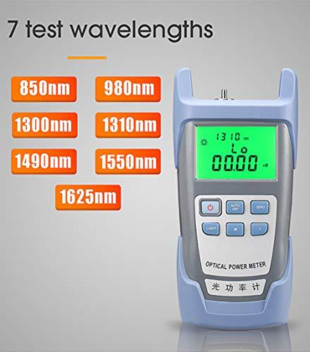 Il est capable de mesurer la puissance optique dans 7 longueurs d'onde, telles que 850/980/1300/1310/1490/1550 / 1625nm.