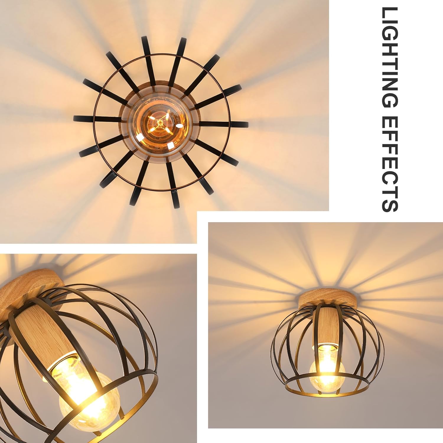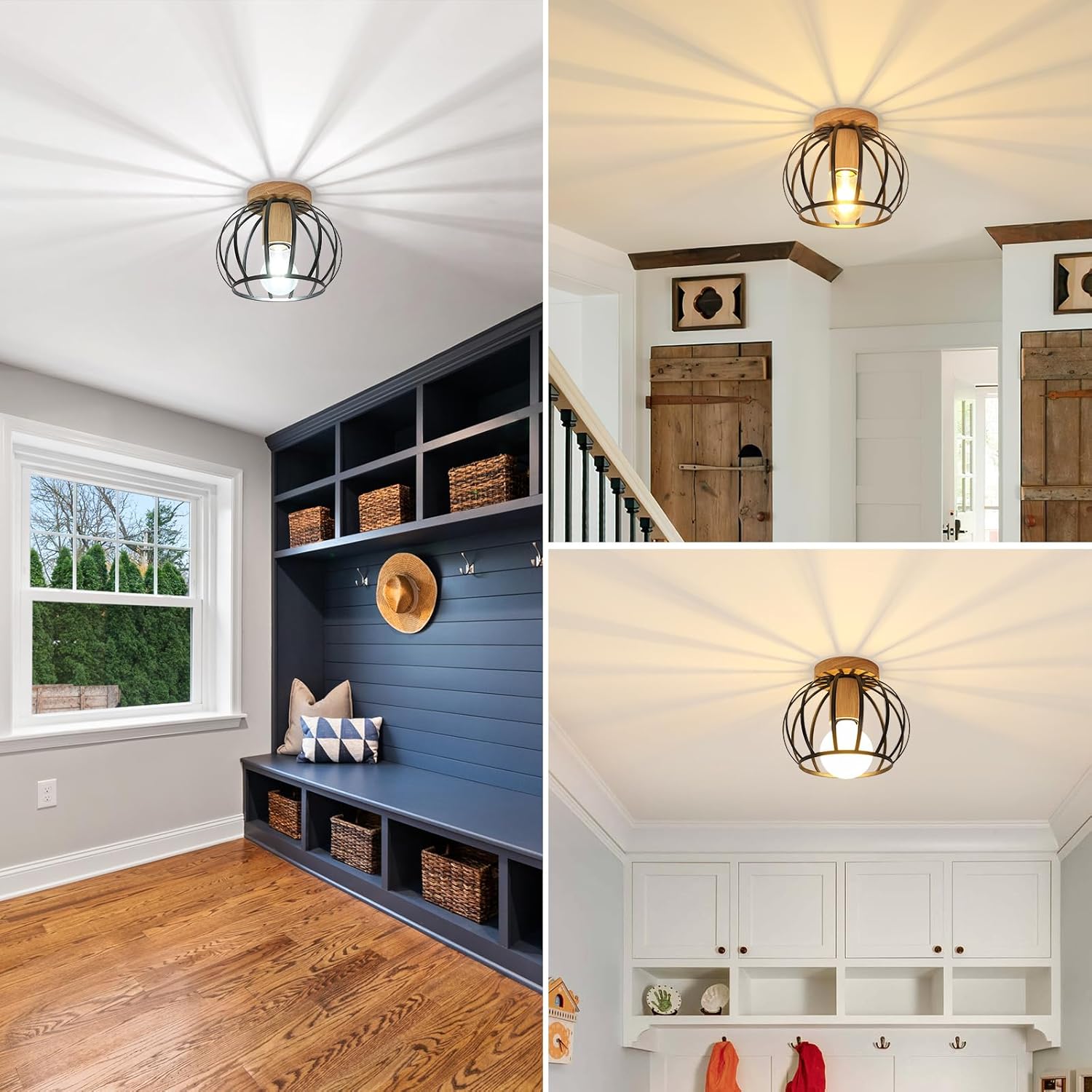 This ceiling light blends timeless industrial appeal with the warmth of natural wood—bringing personality and function into your home.