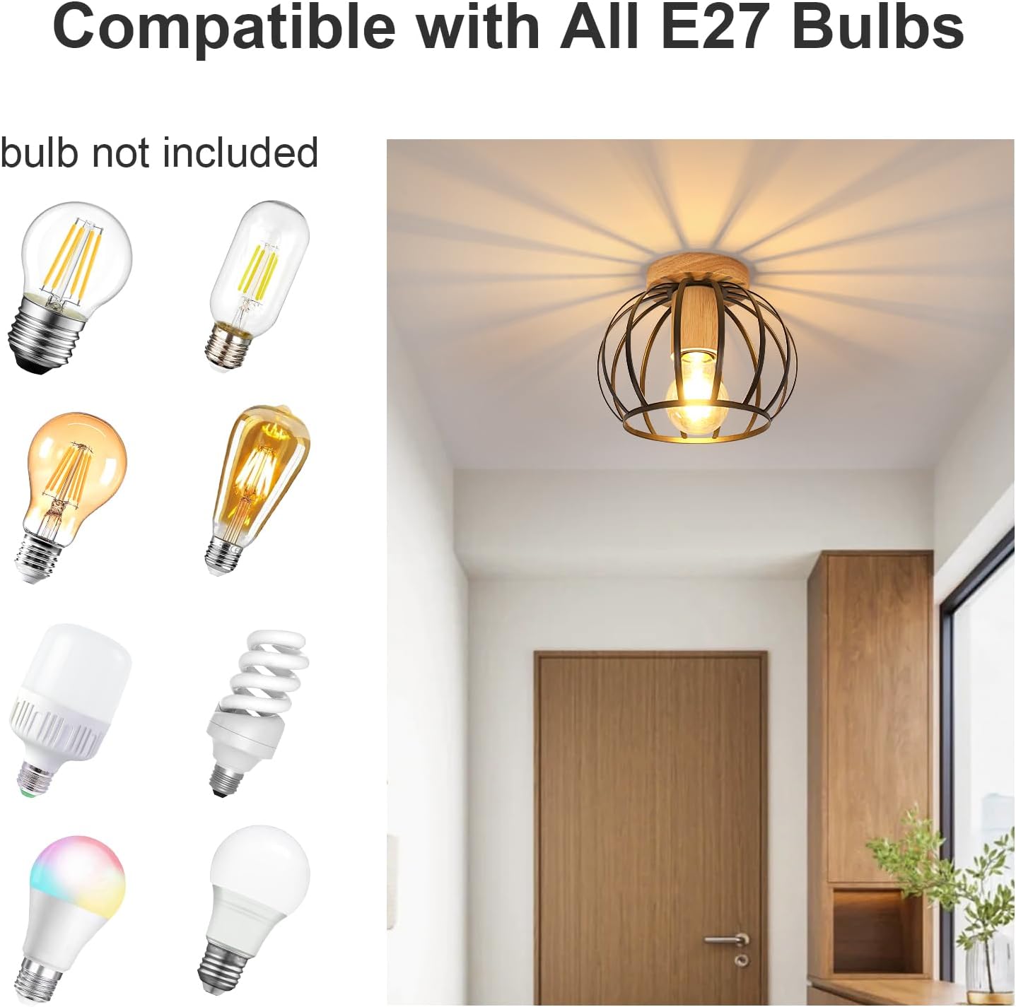 Fits any standard E27 bulb (max 60W). Choose warm, cool, or smart bulbs to match your mood and setup.