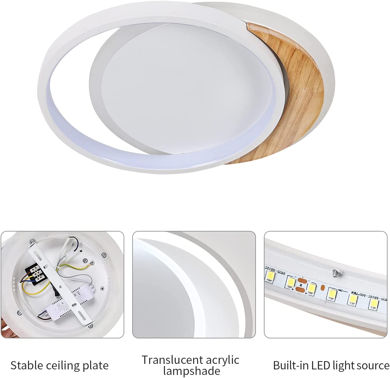 Économie d'énergie et haute efficacité: le plafonnier en bois massif ultra-fin adopte une nouvelle source de lumière LED, le rendement lumineux est uniforme, abat-jour en acrylique ultra-fin, bonne transmission de la lumière, pas d'éblouissement, protection des yeux.