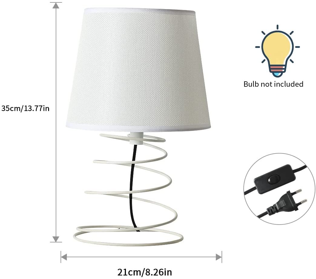 【Conception simple】 La lampe de chevet a un abat-jour en tissu blanc d'aspect moderne et simple assorti à un support en métal en spirale, ce qui rend la lampe élégante et élégante, très appropriée pour la chambre à coucher, la salle d'étude, le salon, l'hôtel, etc.