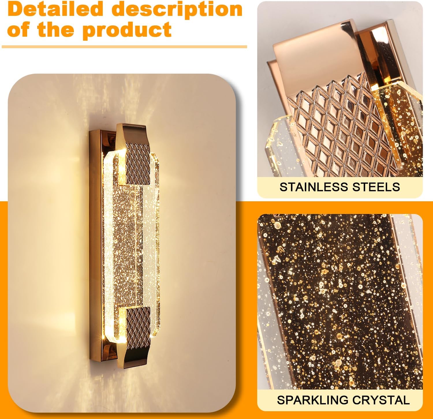 Whether you're creating a cozy vibe or enhancing a modern interior, this crystal gold LED wall light is the perfect fit.