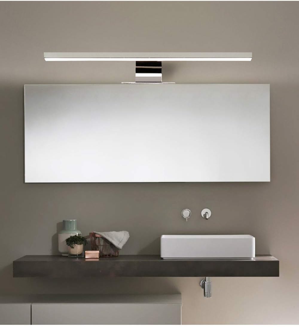 La lumière blanche neutre avec 4000K et 800 lumens peut fonctionner comme éclairage de miroir ou d'armoire. Longueur: 400mm; Puissance: 10W; Résistance à l'eau: IP44.