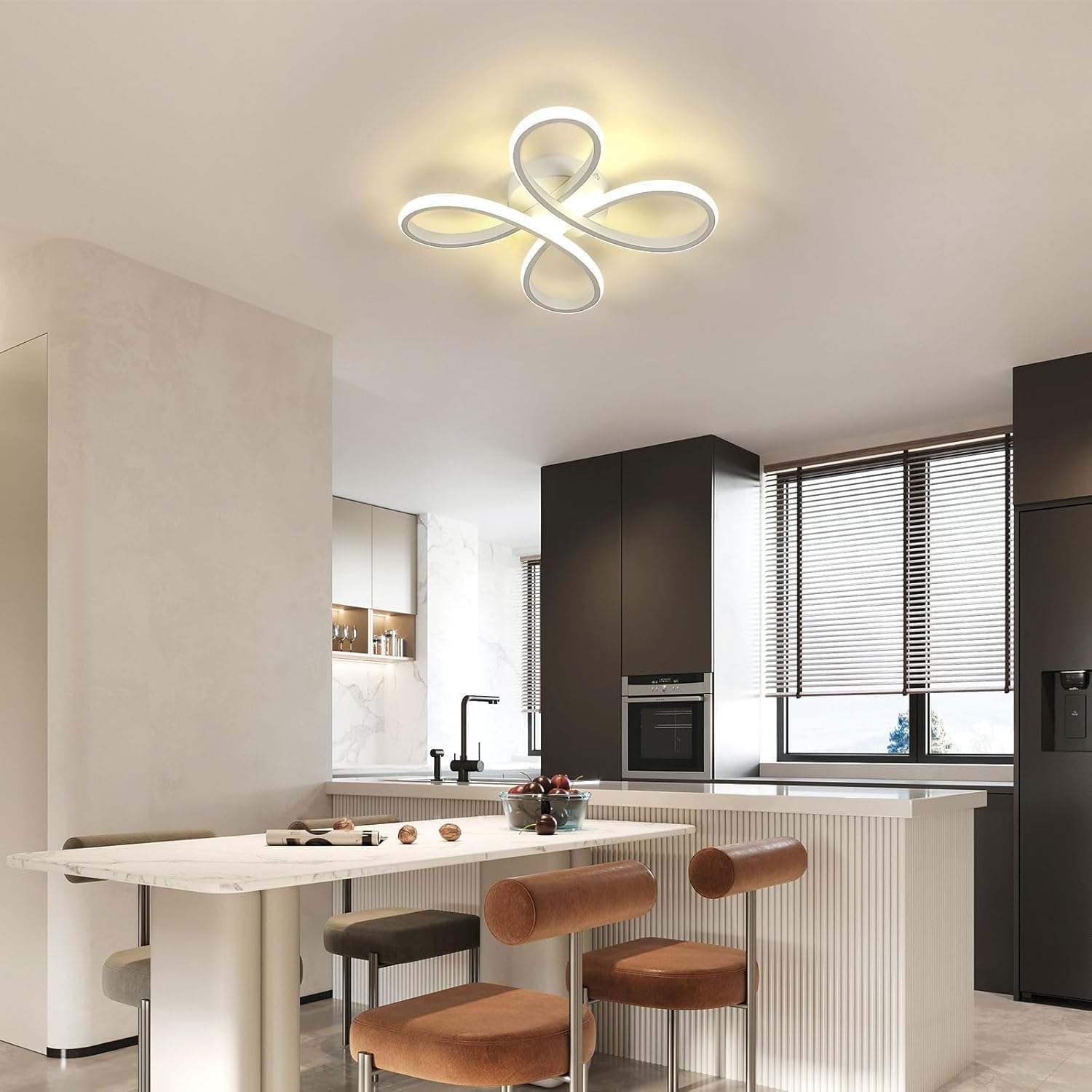 This 30W modern LED ceiling light with a creative floral design emits a soft neutral light (4500K), creating a cozy atmosphere perfect for living rooms, bedrooms, kitchens, or hallways.