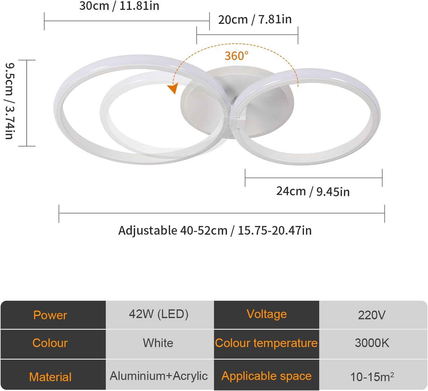 Power: 42W | Brightness: 4700LM | Color Temperature: 3000K | Materials: Iron + Acrylic | Coverage: 10–15㎡