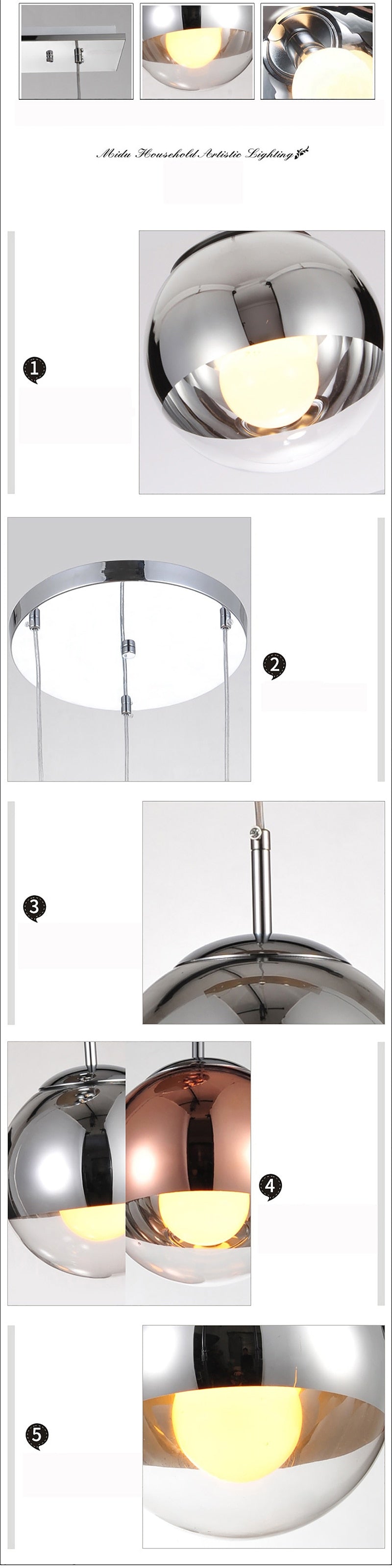 MATÉRIEL: La surface de Abat-jour lustre en verre rond est en verre plaqué et la surface intérieure est chromée pour fournir une sortie de source de lumière riche et douce, créant une atmosphère chaleureuse.