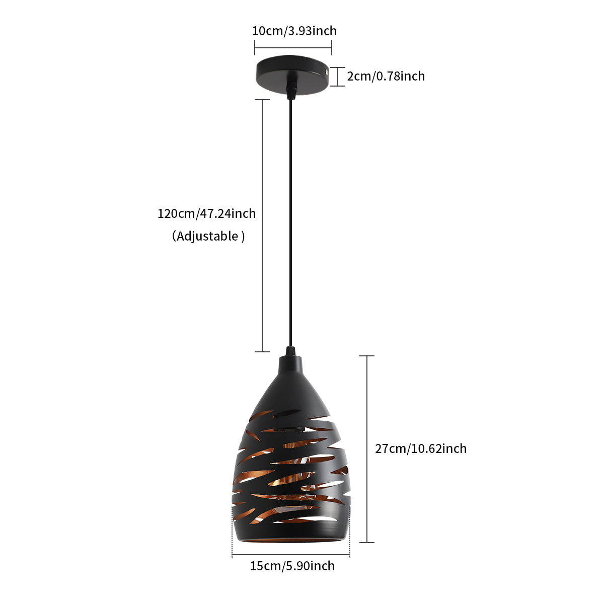 Matériel: fer, couleur extérieure: noir, couleur intérieure: or. L'abat-jour est en fer solide, la surface est peinte à haute température, ne rouille pas, a une couleur uniforme et est durable.