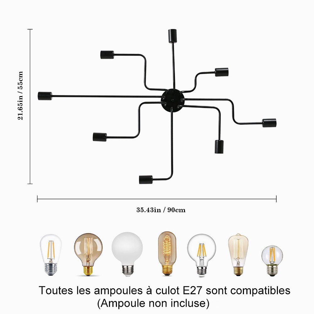 Ce plafonnier est équipé de 8 douilles E27 compatibles avec la plupart des ampoules. Veuillez noter que les ampoules ne sont pas incluses, ce qui vous laisse la liberté de choisir des ampoules LED, Edison ou dimmables selon vos besoins.