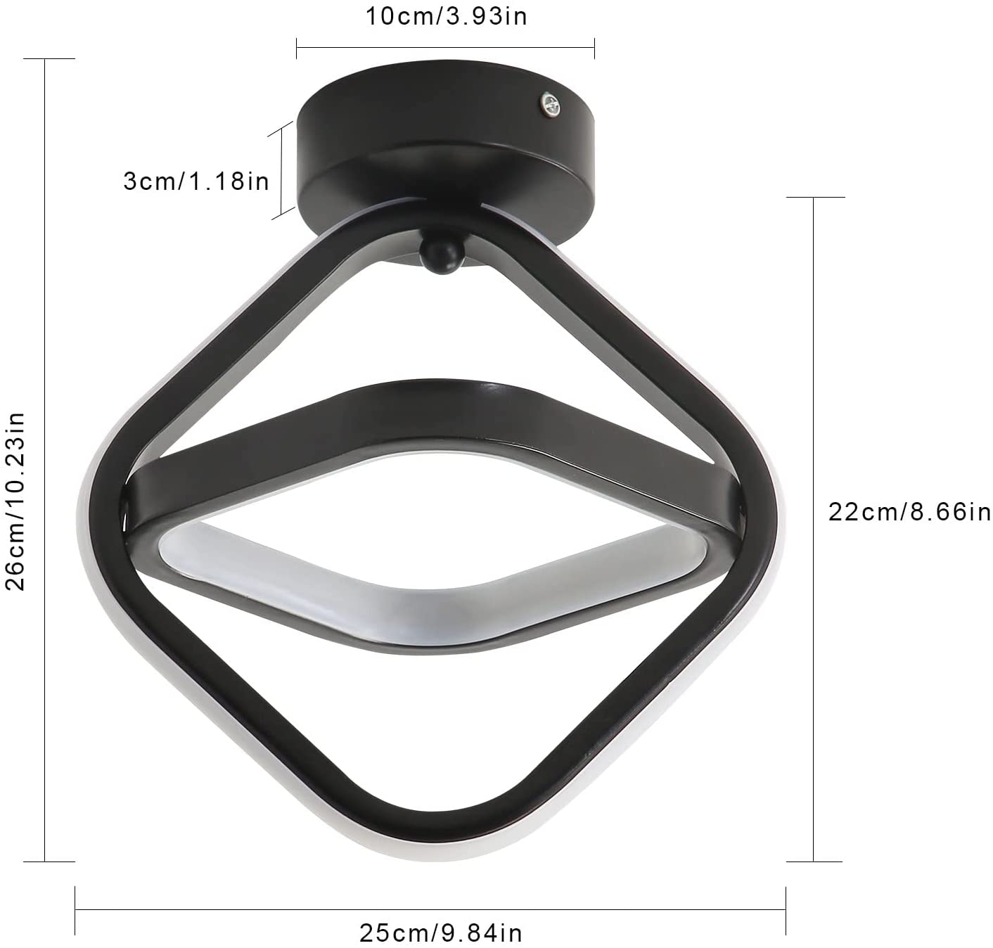 【Taille du plafonnier led】: D22cm*W25cm*H22cm, diamètre du châssis 10*3cm, poids 550g, puissance 22W, tension AC220V, lumière blanche 6000K, plage d'éclairage 5-15㎡