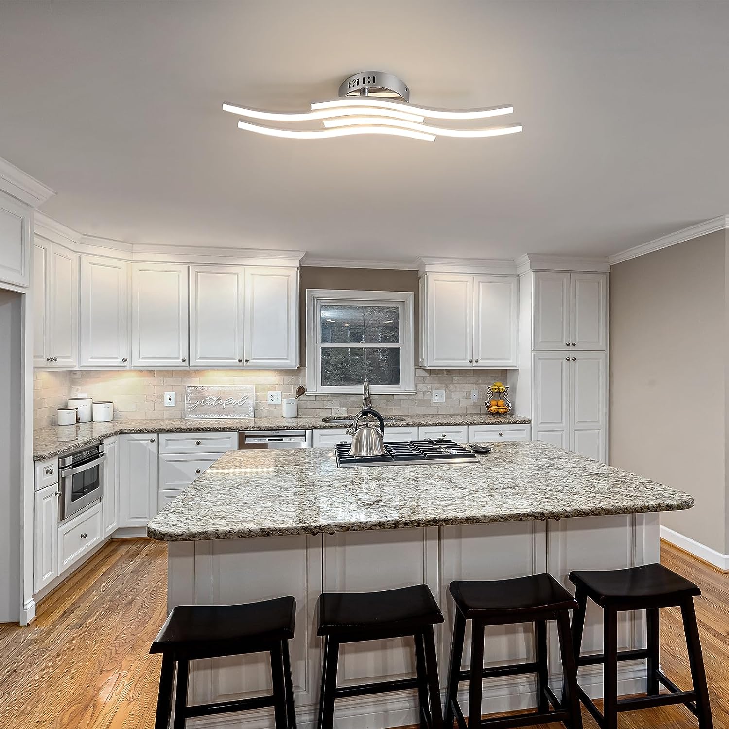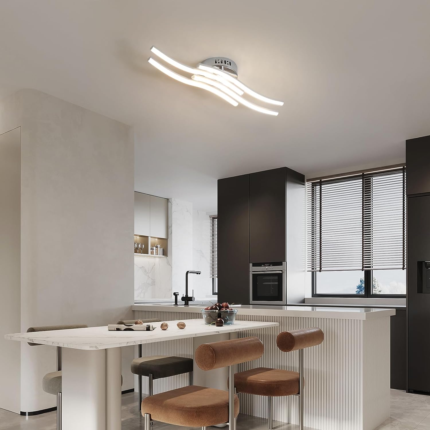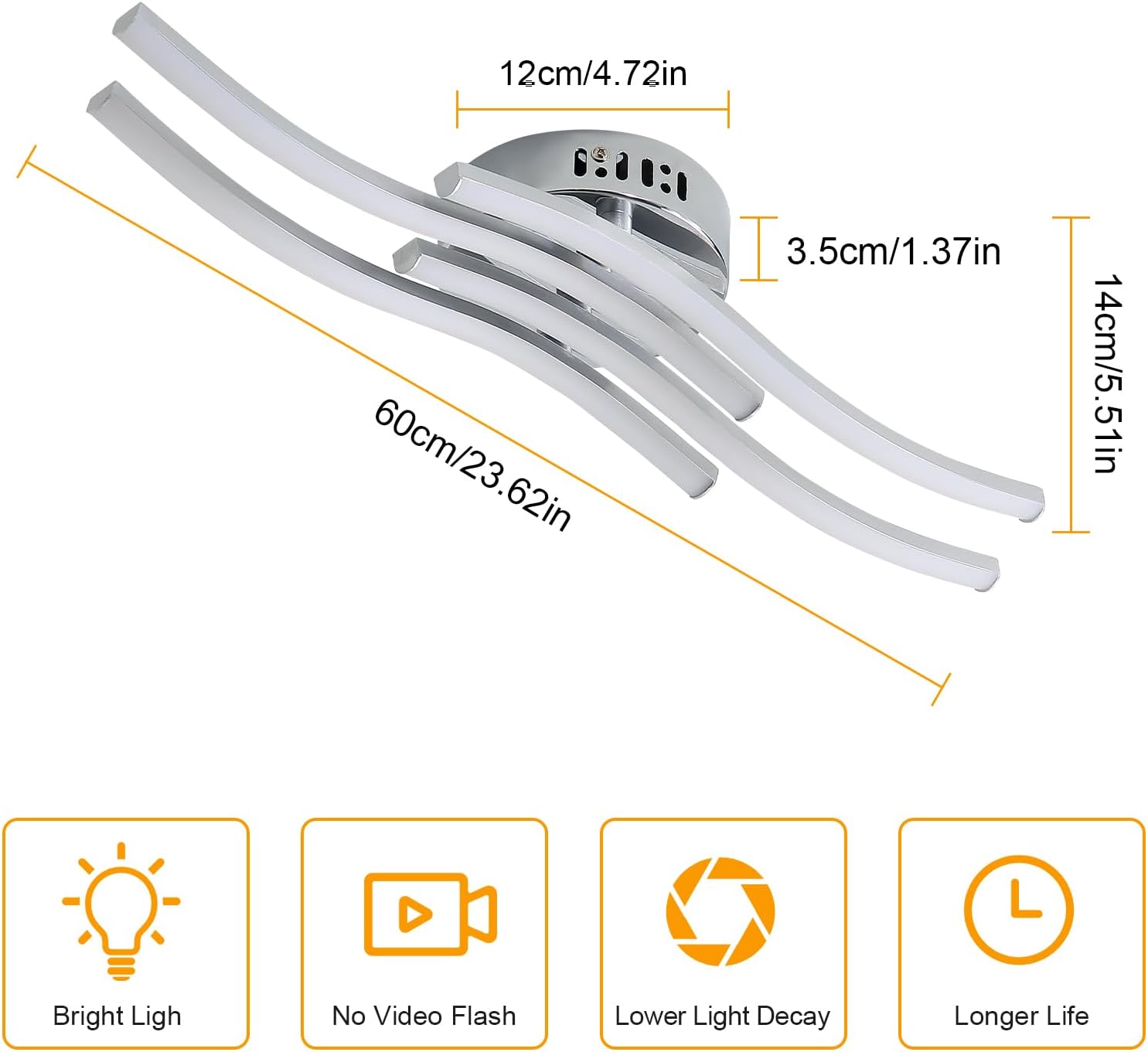 Design unique: Plafonnier LED, en métal couleur aluminium à effet mat, possède 4 bras en forme de vague. Barre lumineuse LED intégrée de haute qualité, avec couvercle en plastique blanc, style design simple, facile à installer et à utiliser!