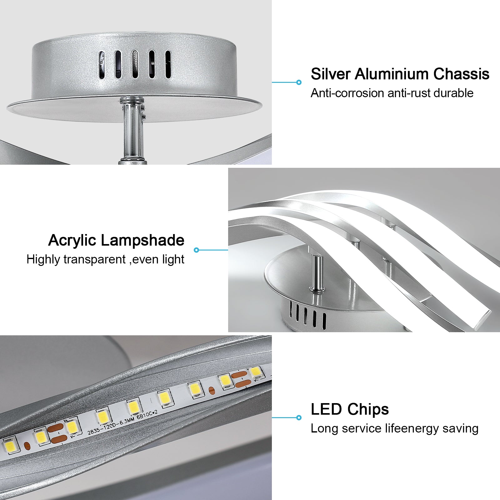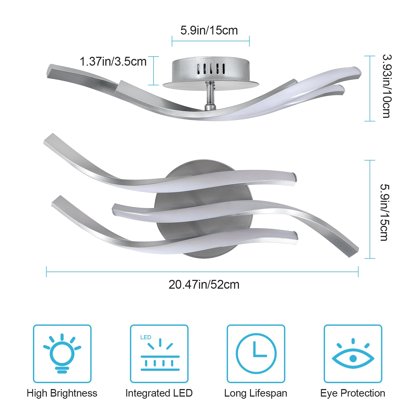 Les lignes ondulées en aluminium argenté apportent une touche artistique et contemporaine à votre décoration intérieure. Fournit un éclairage stable et sans scintillement, réduisant la fatigue visuelle et protégeant les yeux.