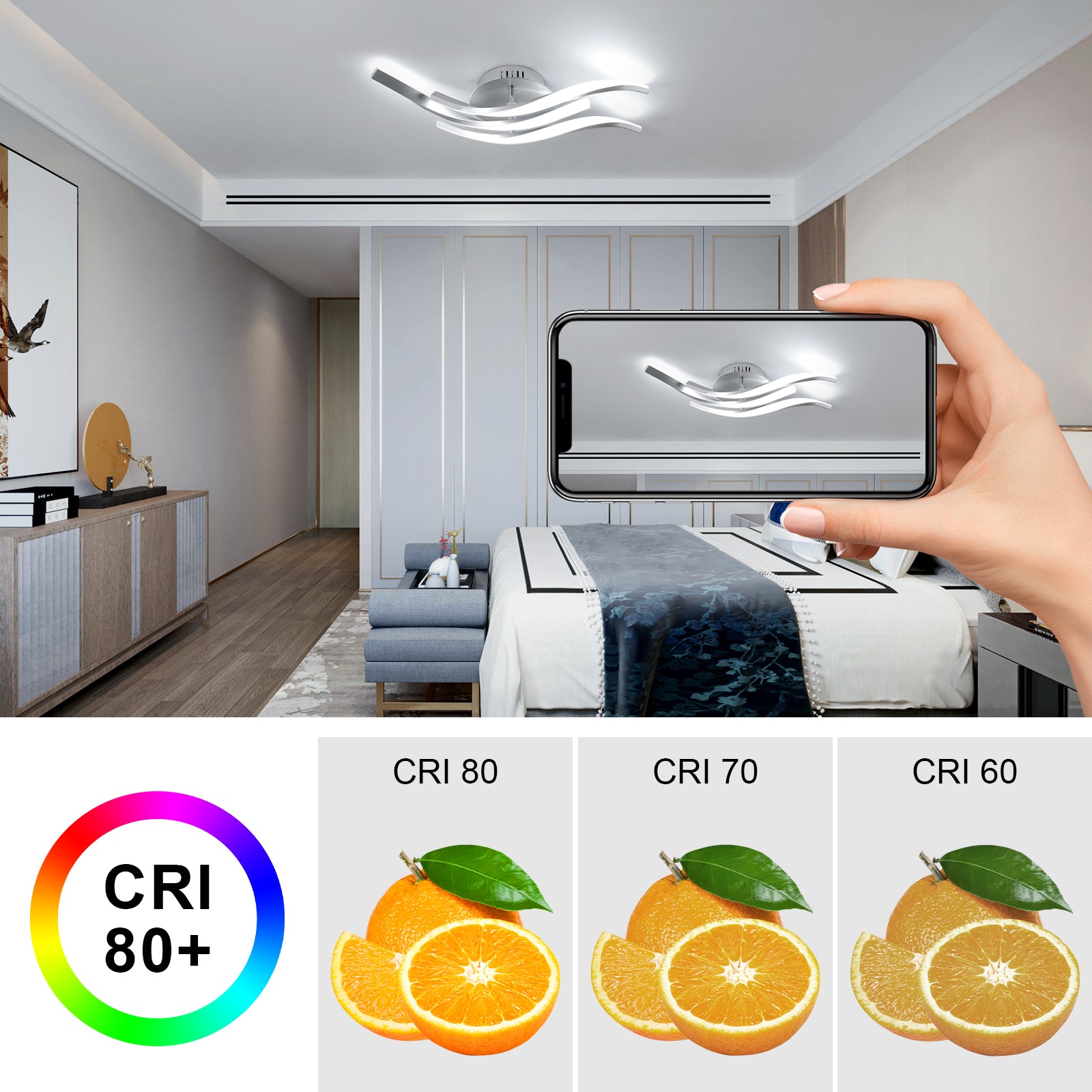 Un CRI de 80+ assure des couleurs naturelles et précises, améliorant l'ambiance de votre pièce.