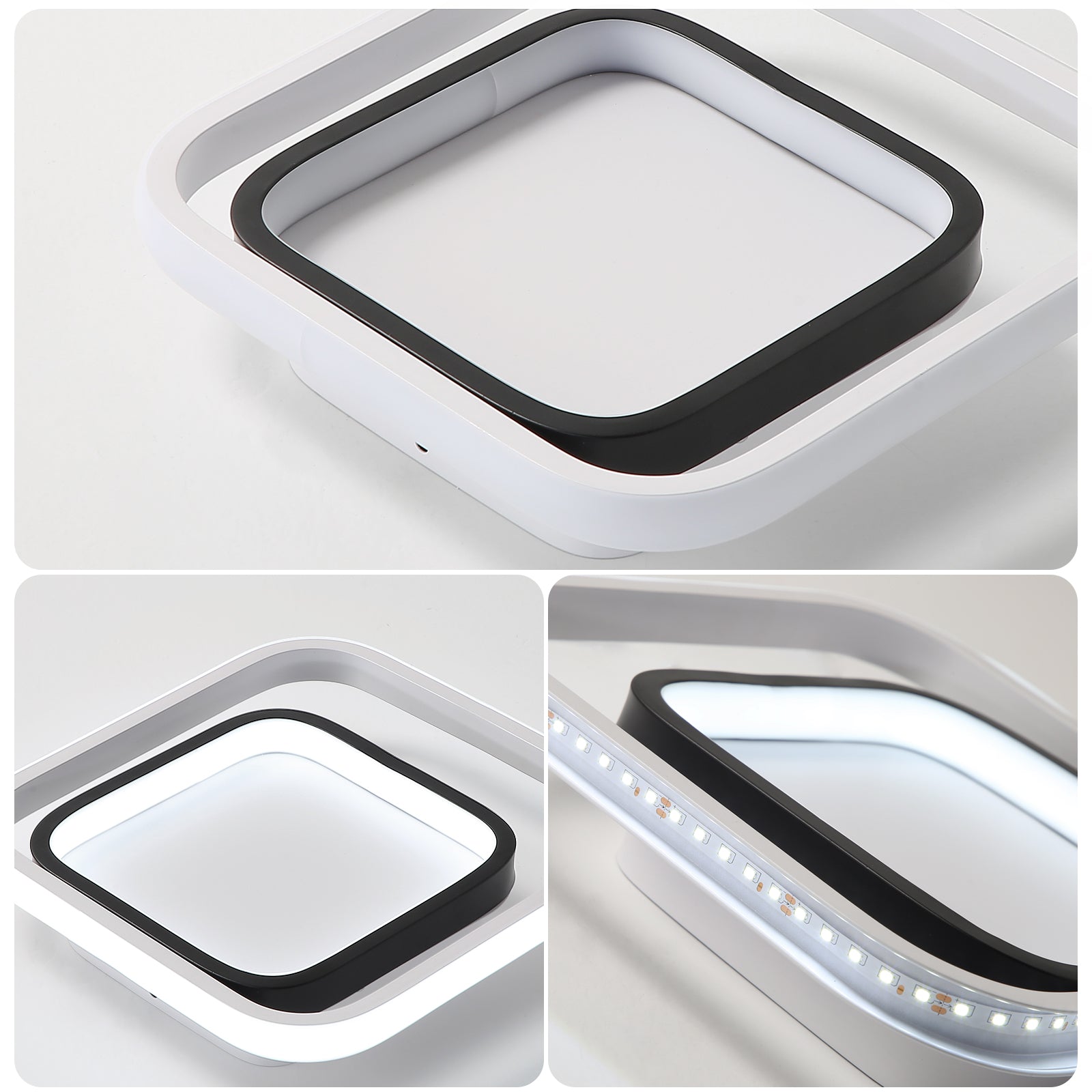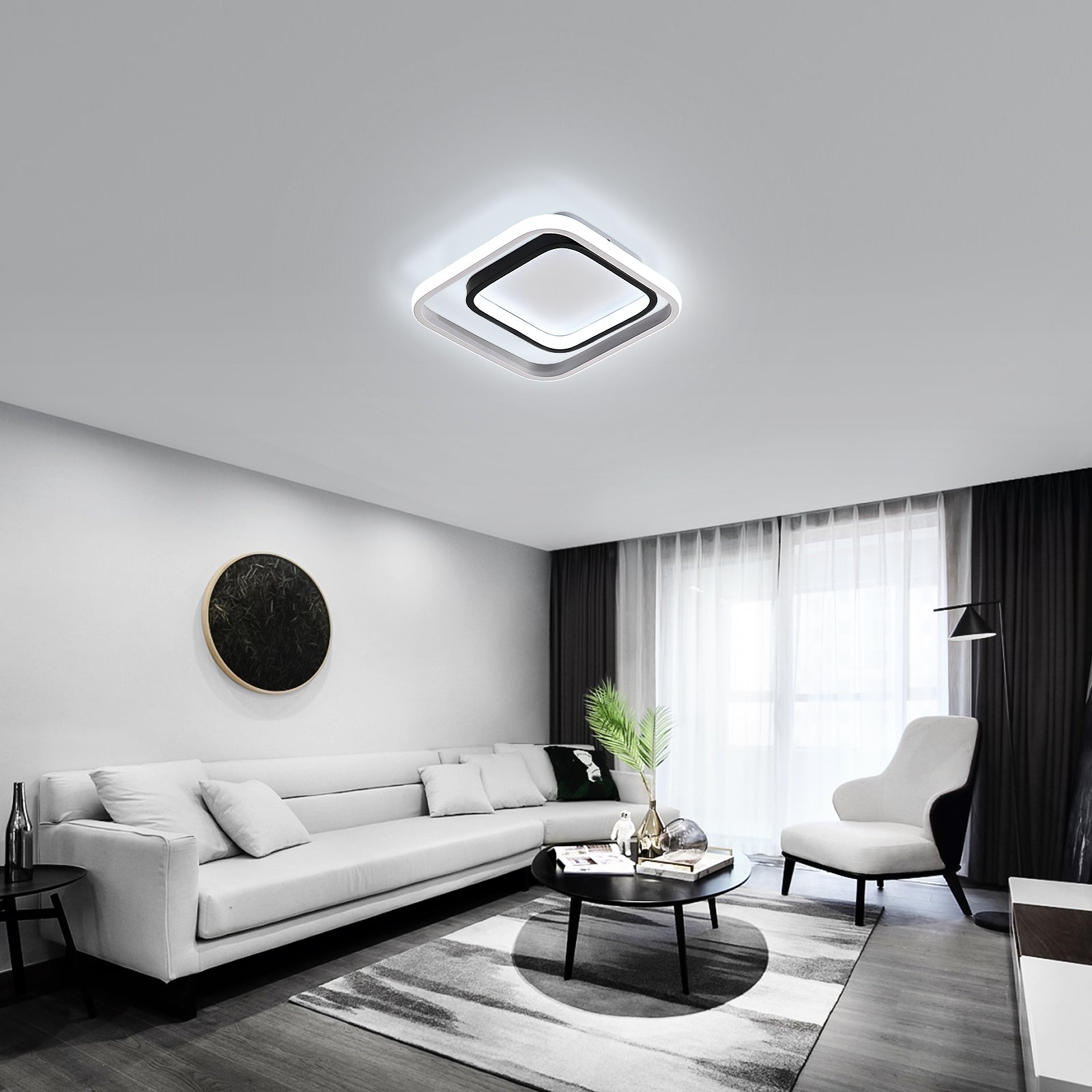 La forme du plafonnier LED est carrée, la puissance est de 30W environ 3300 lumens, la tension est de 220V, une lumière blanche froide de 6000K illumine le design.