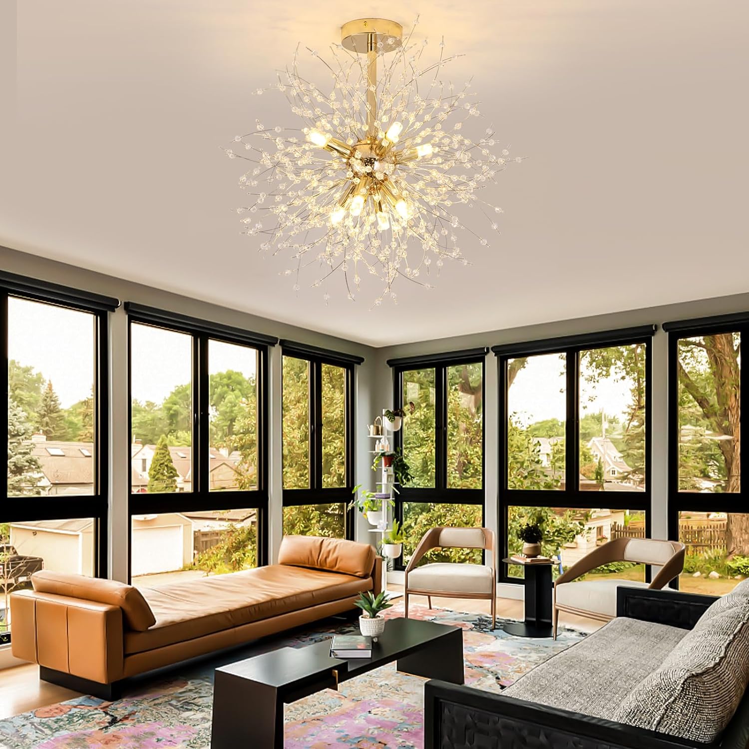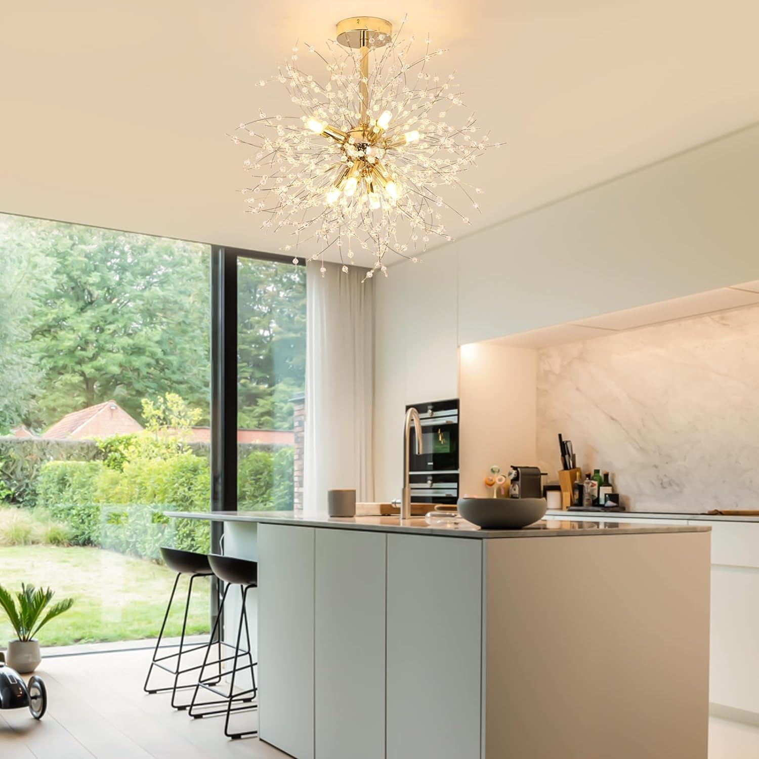 【Modern Design】Apparence similaire à la forme de la branche allongée, décoration en cristal transparent avec le corps de la lampe plus à la mode. Les branches de cristal sont comme des feux d'artifice, le plafonnier doré créant une atmosphère douce et belle.