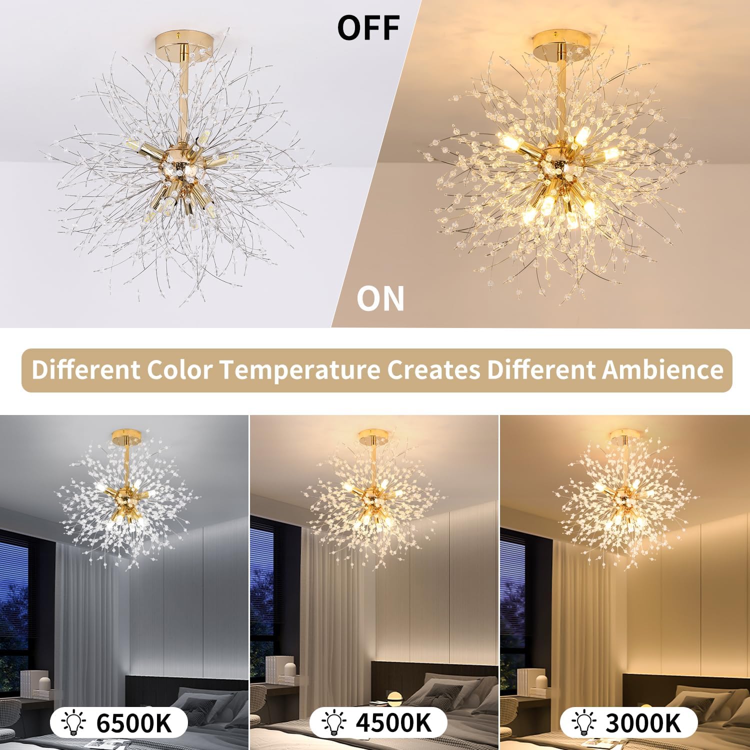 【Matériau de Haute Qualité】Le lustre de pissenlit en cristal scandinave est fait de fer, de perles de cristal clair avec des bords tranchants, le corps de la lampe adopte un processus unique de galvanoplastie, une couleur brillante et un éclat, un lustre de chambre à coucher moderne avec une source de lumière LED, la source de lumière est douce et chaleureuse.