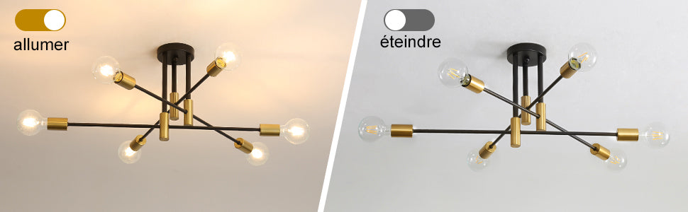 Le lustre du milieu du siècle, le design du corps de la lampe noire, la coupe de la lampe dorée et la lumière linéaire, tout en complétant votre chambre, ils ajouteront de la mode à votre chambre et créeront une atmosphère parfaite. La manivelle de cette lampe pour installer l'ampoule peut pivoter à 180 degrés horizontalement, afin que vous puissiez trouver votre forme préférée.