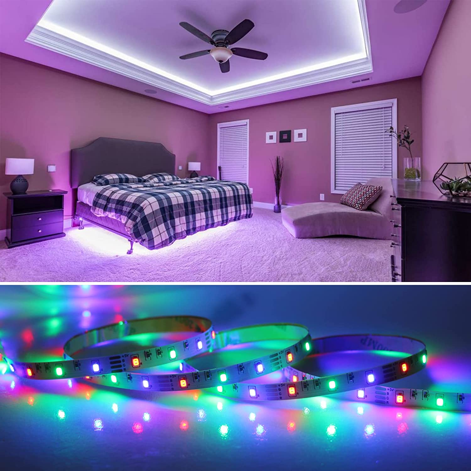Changement de couleur: ce ruban LED dispose de 16 couleurs et 4 modes de changement de lumière. Vous pouvez choisir votre couleur préférée pour décorer la pièce selon vos propres préférences, créer différentes atmosphères pour la pièce et apporter une touche de créativité.