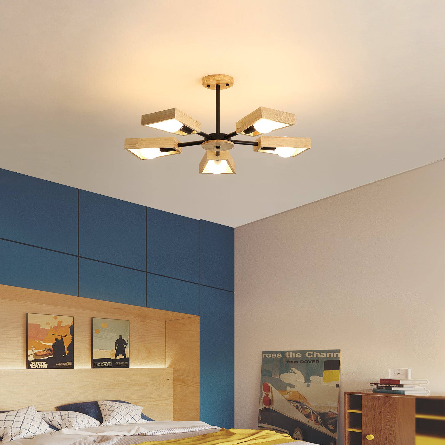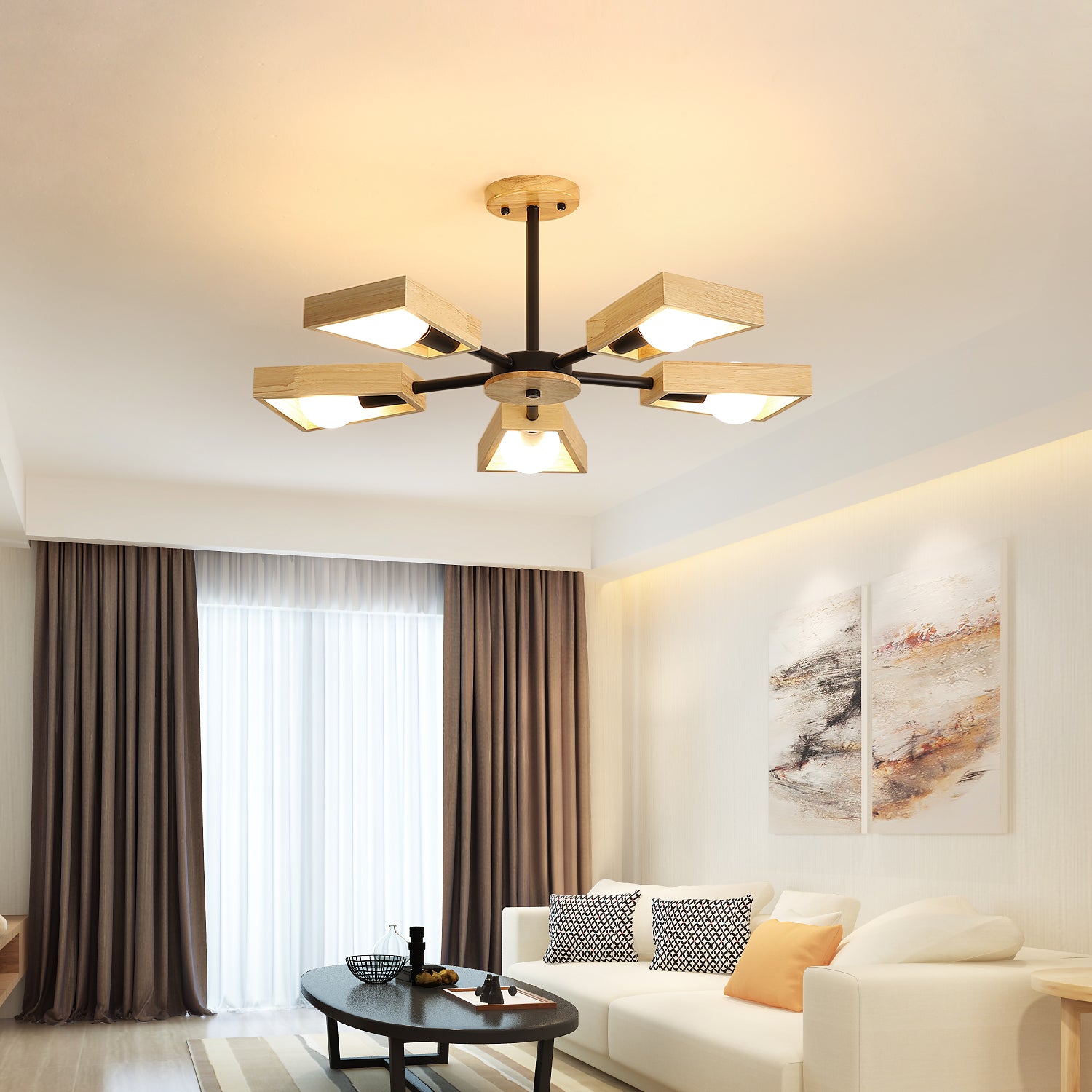 【LOOK ÉLÉGANT】: Cette lampe de Plafond en Bois a un look simpliste mais artistique, parfaitement construite avec une lampe d'art en bois et en fer, combinant un vintage attrayant avec un charme industriel moderne, ajoutant un beau décor à votre plafond.