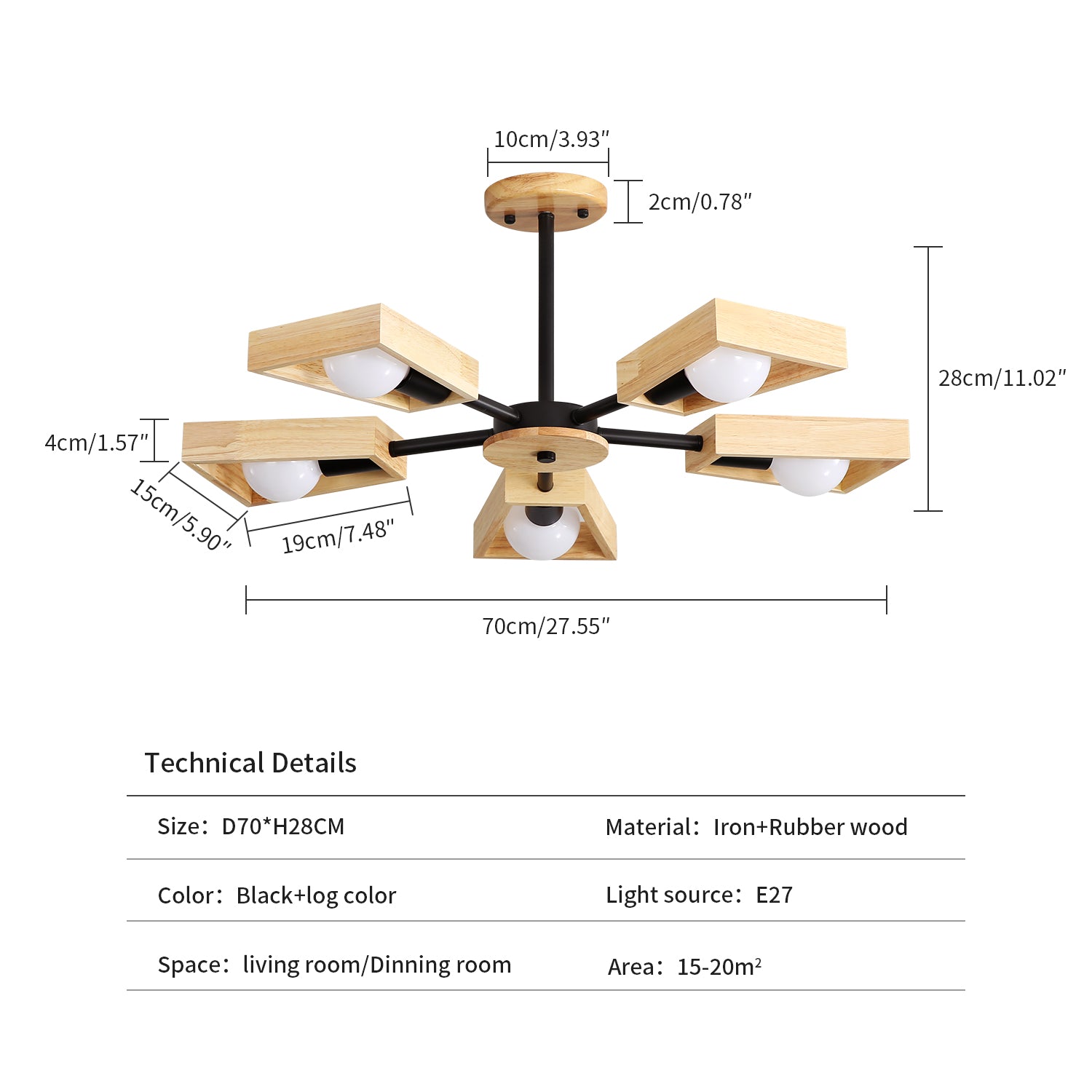 【EXIGENCES DES AMPOULES ET TAILLE IDÉALE】: Les ampoules ne sont pas incluses. Plafonnier bois industriel nécessitent 5 ampoules avec douille E27 (40 W pour chaque lumière). Taille : longueur : 70 cm, hauteur : 28 cm